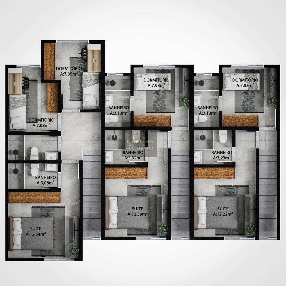 # 1 suíte + dois dormitórios